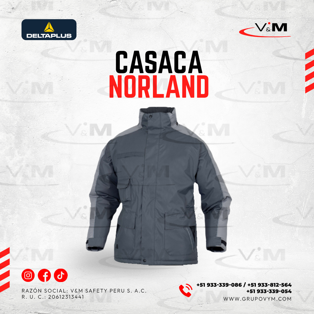 La Casaca NORLAND es una parka impermeable diseñada para condiciones extremas de frío, con resistencia térmica de hasta -40 °C. Fabricada en poliéster Oxford con recubrimiento de poliuretano, cuenta con capucha desmontable, cuello forrado en polar, mitones cortavientos y múltiples bolsillos funcionales. Ofrece excelente protección tanto en exteriores como interiores fríos. Certificada bajo EN342 – Categoría 2.