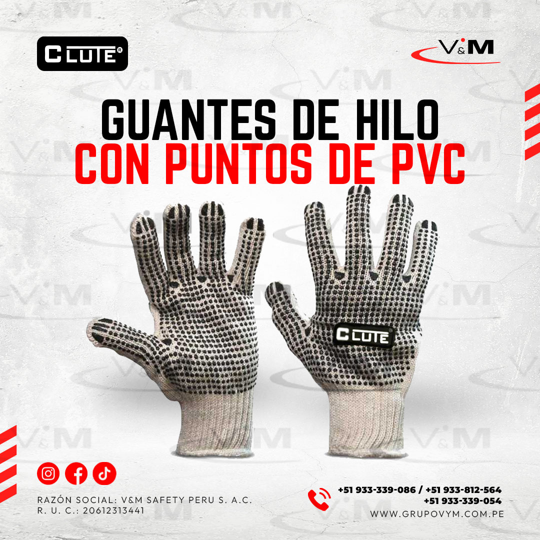 Los Guantes de hilo con puntos de PVC en palma y dorso CLUTE están fabricados con poly algodón y tejido Galga N°7, brindando transpirabilidad, agarre y resistencia. Ligeros, lavables y con refuerzos en uñas y entre dedos, son ideales para manipulación general, carga, ensamblaje y mantenimiento.