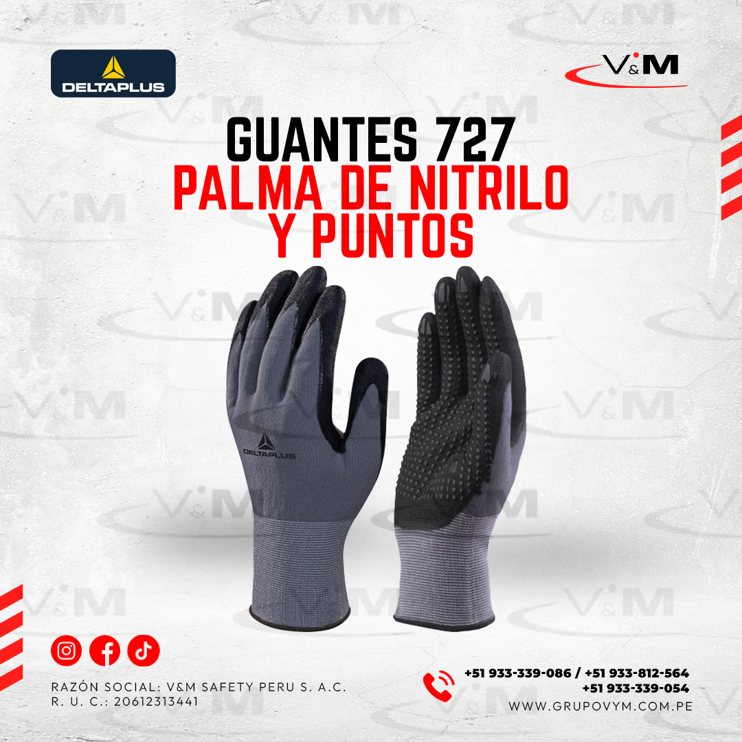 El Guante VE727 de Delta Plus ofrece alta destreza, comodidad y agarre superior en trabajos industriales. Su palma de nitrilo y poliuretano con puntos antideslizantes es ideal para tareas de manipulación y construcción, garantizando confort y protección en su uso prolongado.