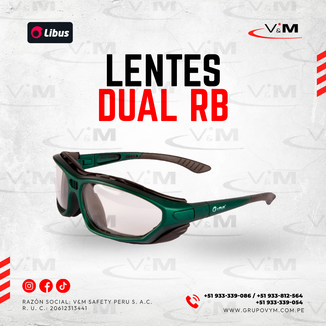 Los lentes Libus Dual RB AF ofrecen protección ocular de alto nivel con diseño envolvente, ideal para construcción, minería e industria. Incorporan lentes de policarbonato con filtro UV (99.9%), tratamiento antiempañante, patillas telescópicas ajustables y un armazón interno desmontable con espuma soft para mayor comodidad. Brindan protección frontal y lateral y están diseñados para un ajuste seguro y confortable durante largas jornadas.