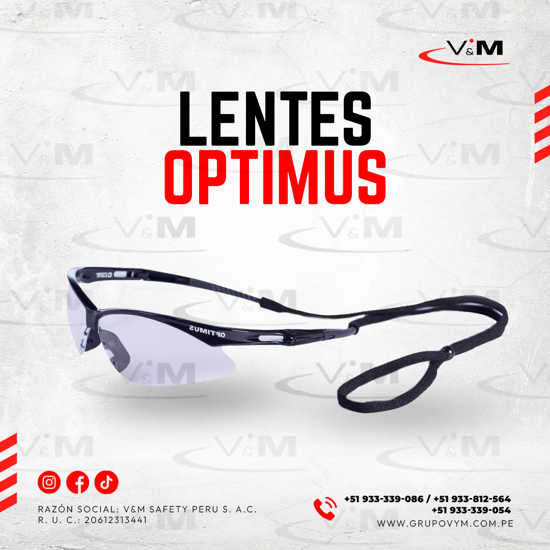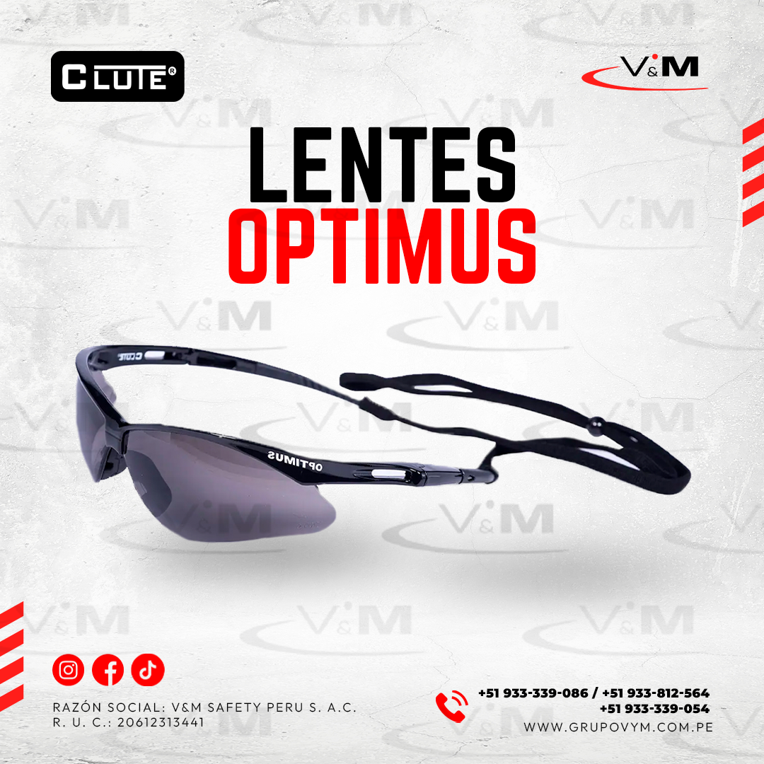 Los lentes Optimus de Clute ofrecen protección ocular con diseño envolvente, liviano y deportivo. Fabricados en policarbonato resistente, cuentan con tratamiento antiempañante, protección UV 99.9% y cumplen con la norma ANSI Z87.1. Incluyen puente nasal de silicona, patillas con goma y están disponibles en luna clara y oscura. Ideales para uso industrial, en interiores o exteriores.