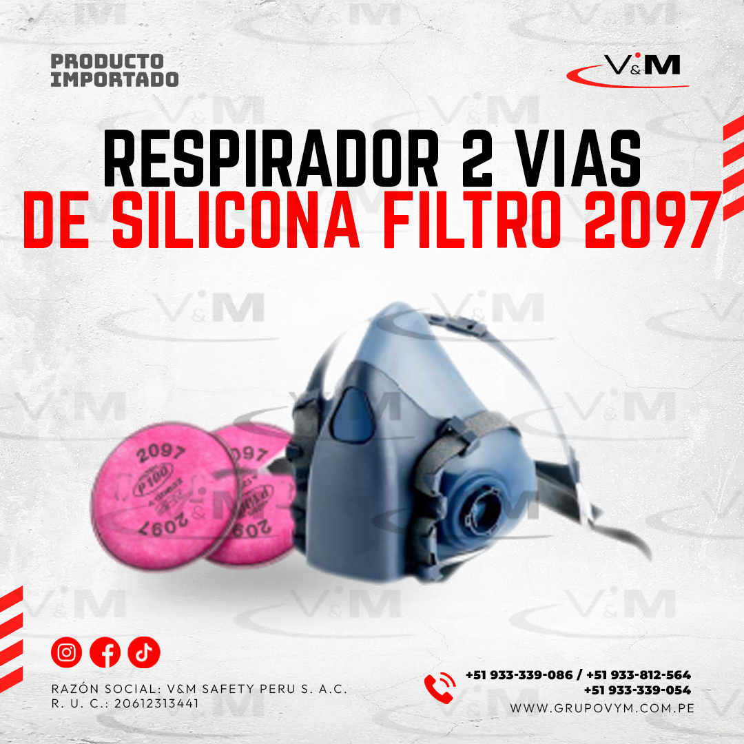Respirador reutilizable con doble filtro P100 y válvula de exhalación. Su diseño ergonómico alivia la presión nasal y mejora la ventilación interna. Fabricado en silicona, con bandas elásticas de polietileno y piezas reemplazables.