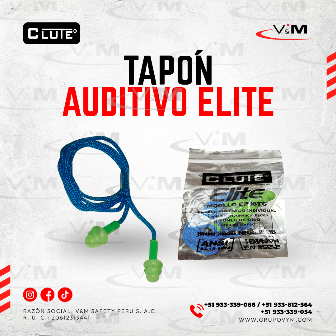 El Tapón Auditivo Elite TPR Clute con NRR 25dB ofrece protección auditiva eficaz. Hecho de TPR hipoalergénico, reutilizable y con diseño cónico para un ajuste seguro. Viene con cordón textil y está disponible en dos presentaciones: con estuche y en bolsa. Cumple con las normas ANSI y EN 352-2.